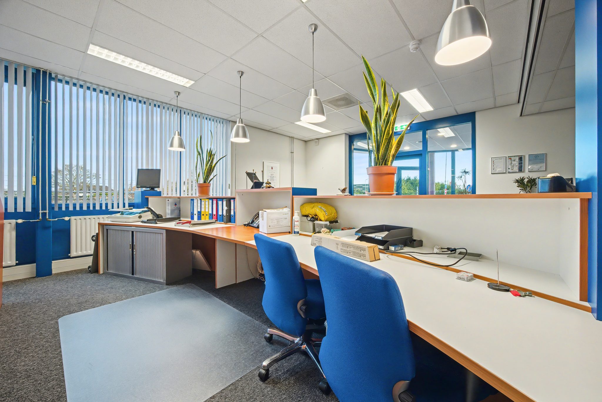 De kantoorruimten zijn voorzien van: