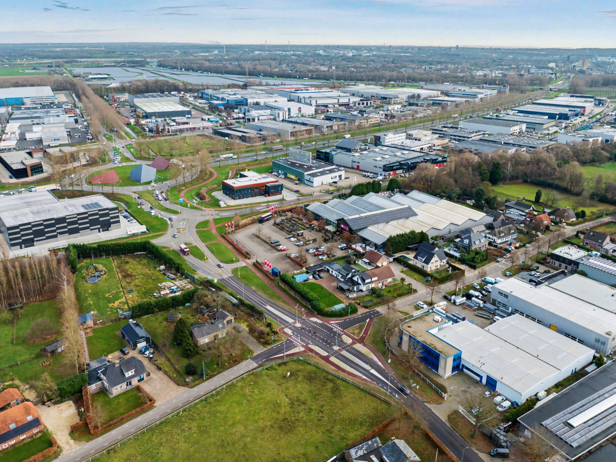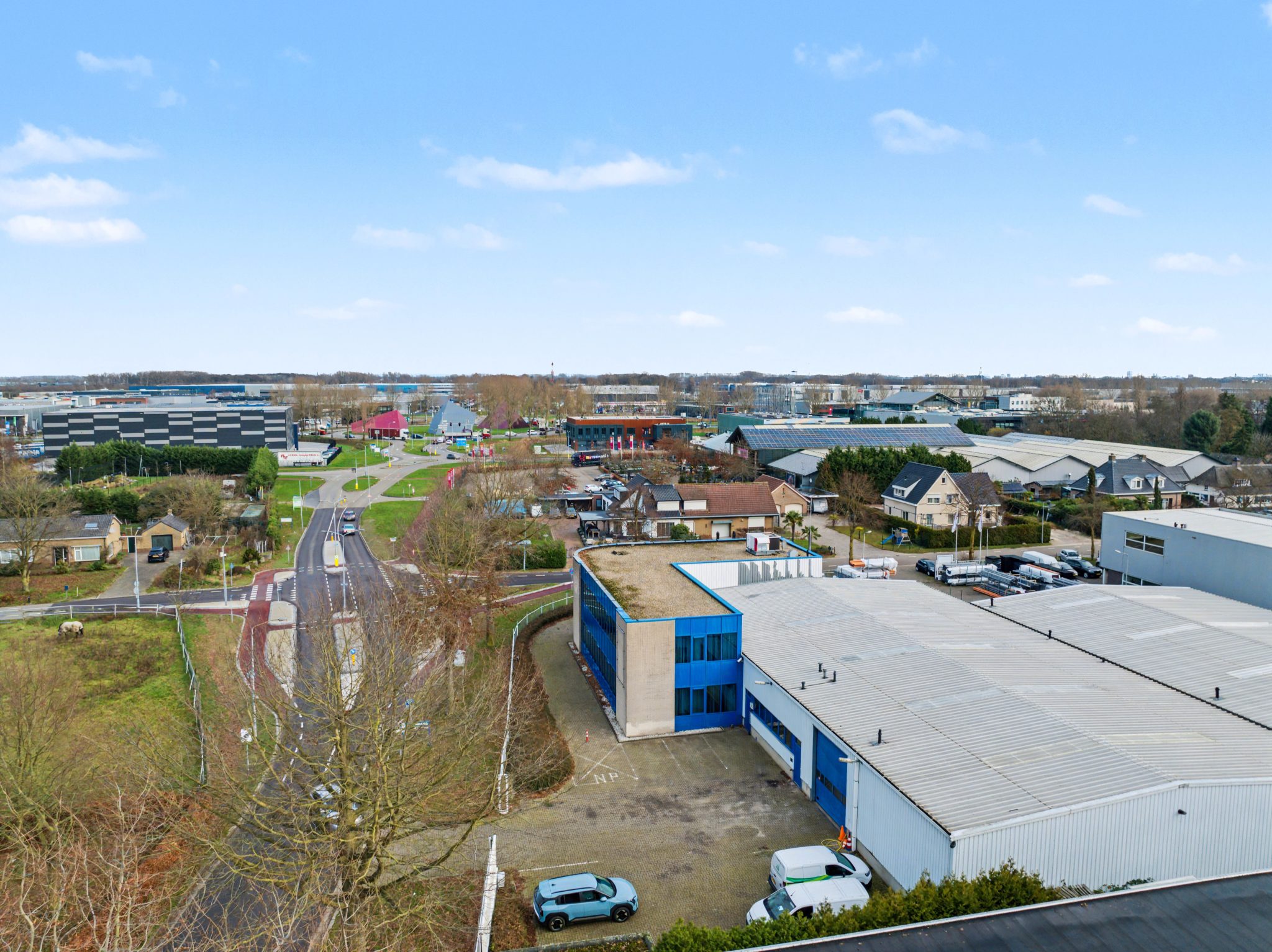 In de directe omgeving staan enkele gelijksoortige bedrijfsgebouwen, bedrijven in de automotive sector, kleine productie- en opslaghallen, groothandels en grootschalige detailhandel.